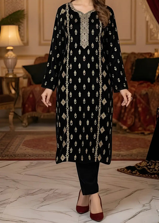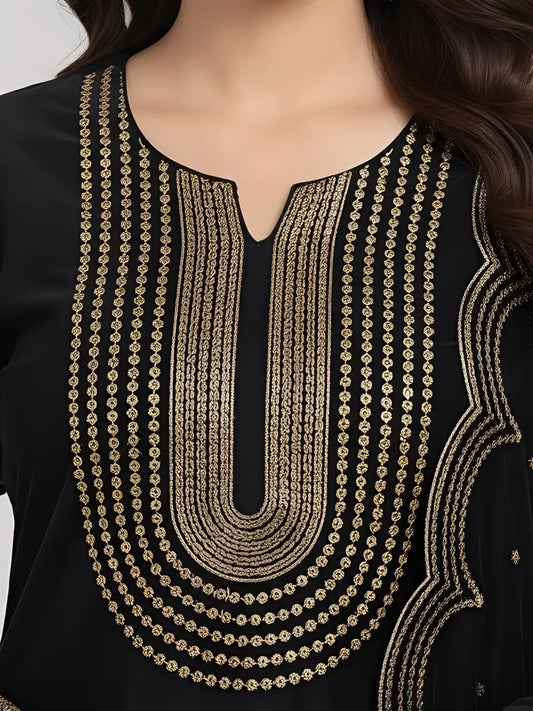 3PC BLACK PURE VELVET FANCY HEAVY EMBROIDERED