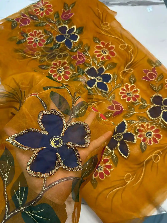 4PC MUSTARD ORGANZA HEAVY HAND PAINT FULLY GOTTA WORKRegular price Rs.4,850.00 PKRRegular priceUnit price / perRs.9,500.00 PKRSale price Rs.4,850.00 PKRSALE