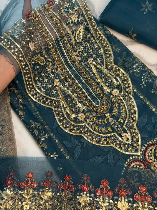 4PC NET FANCY SUIT HEAVY EMBROIDERY WORK