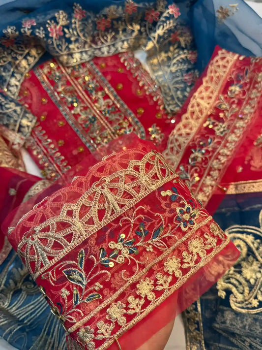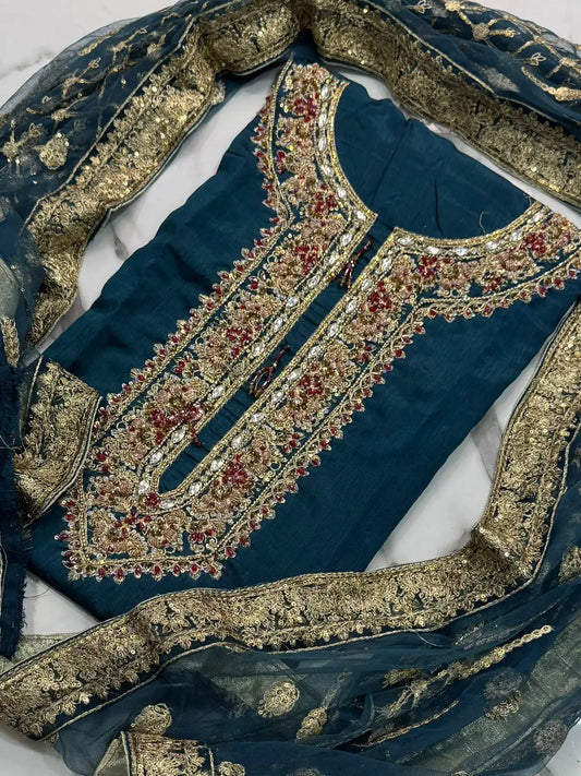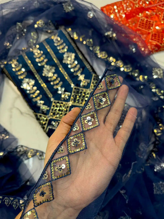 4PC BLUE FANCY HEAVY EMBROIDERY WORK