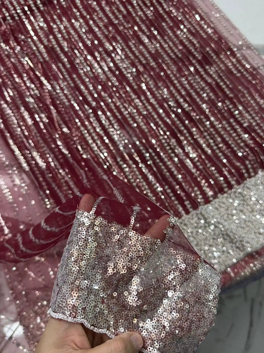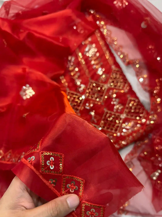4PC ORGANZA MEHROON FANCY SUIT FULLY HANDMADE WORK