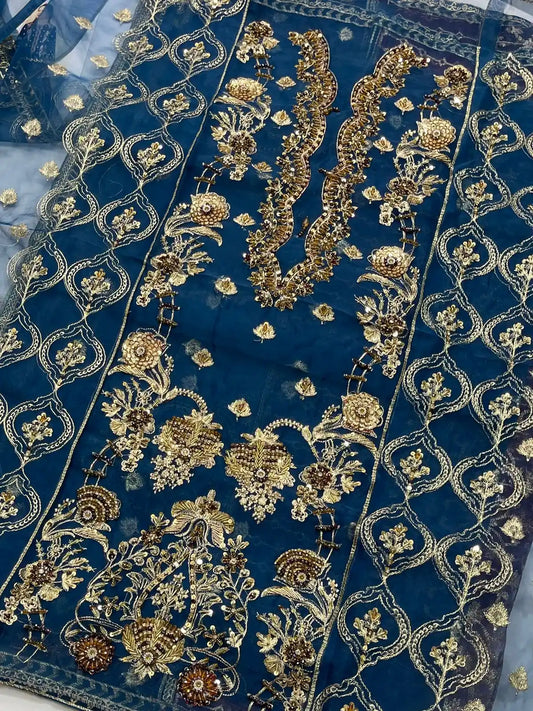 4PC ORGANZA ZINC FANCY SUIT FULLY HANDMADE WORK