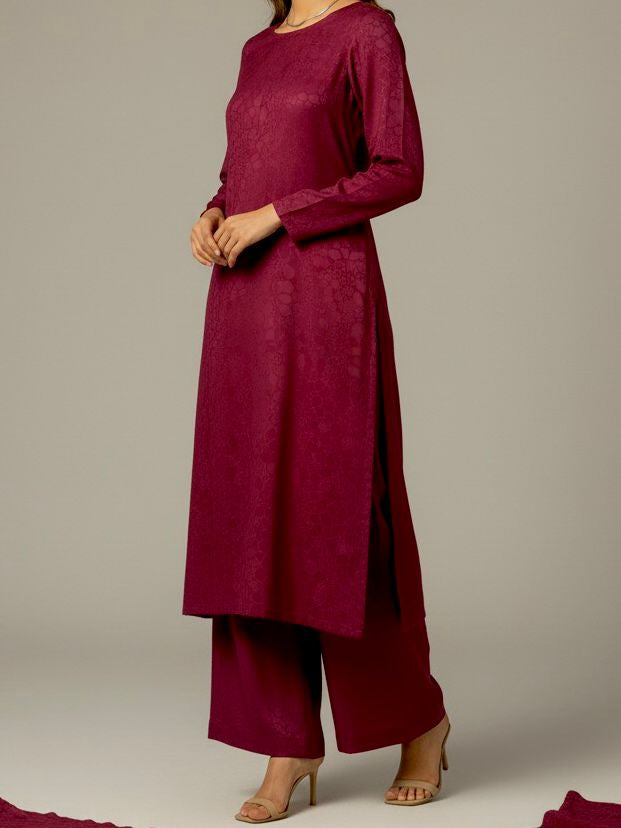 Elevate your style with this premium 2-piece suit made from high-quality self ambos fabric. Featuring a sleek tailored fit and smooth texture, it’s perfect for formal events