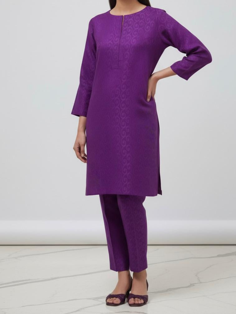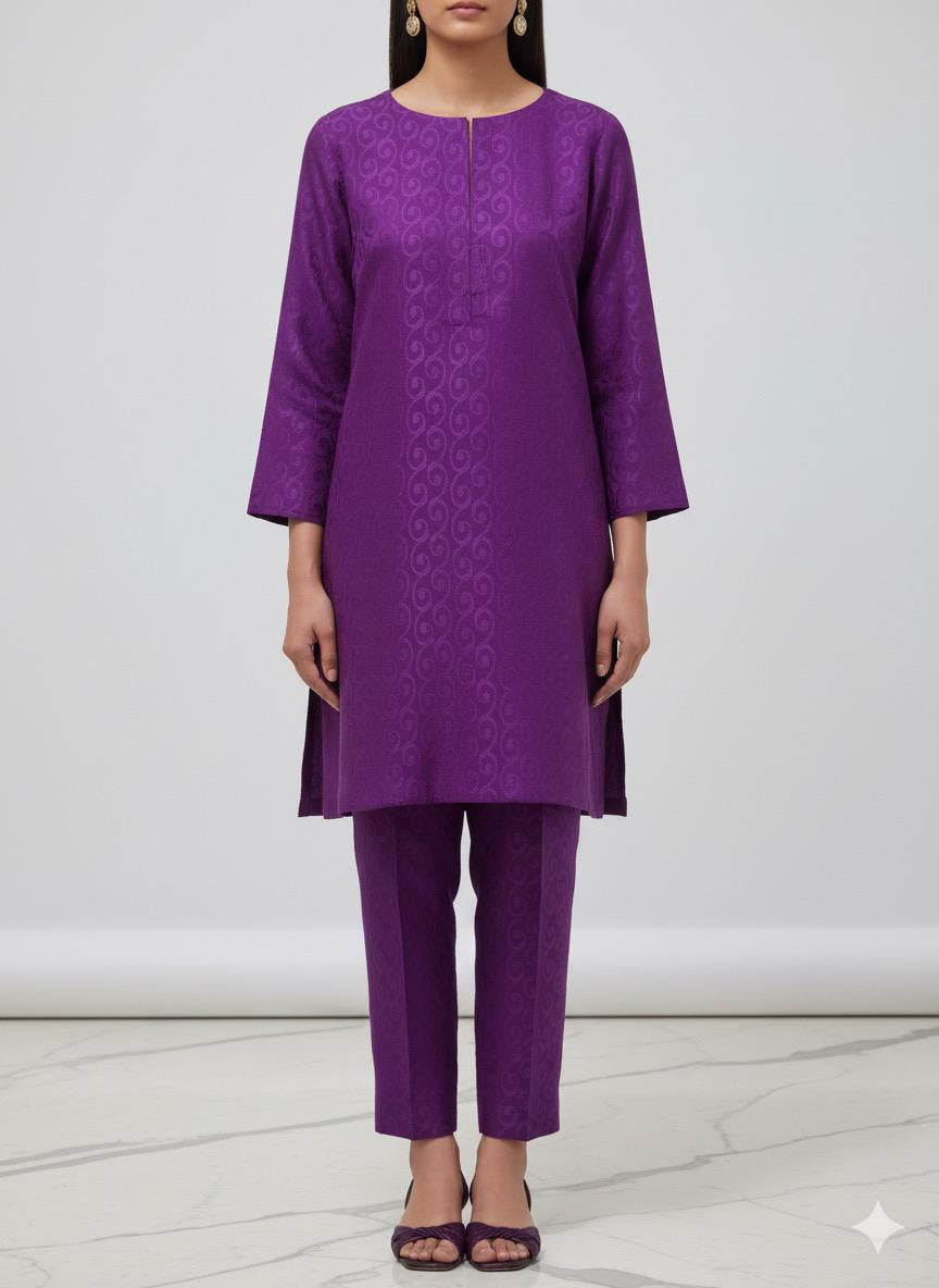 Elevate your style with this premium 2-piece suit made from high-quality self ambos fabric. Featuring a sleek tailored fit and smooth texture, it’s perfect for formal events