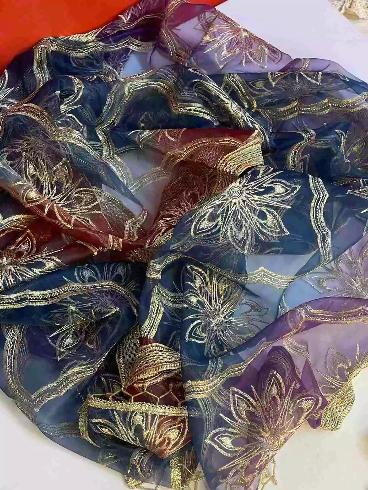 DUPATTA: Beautiful Zinc Red and Purple Mixture Colors Pure Organza Dupatta Fully Embroidery Work