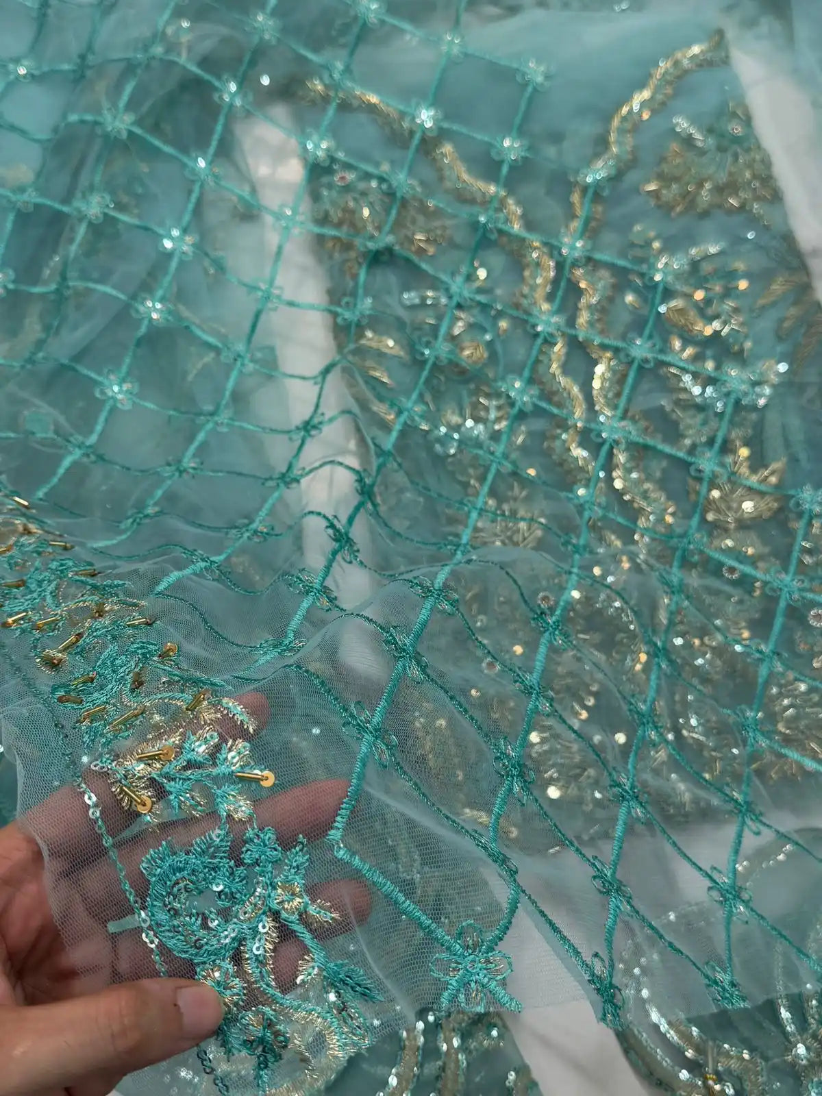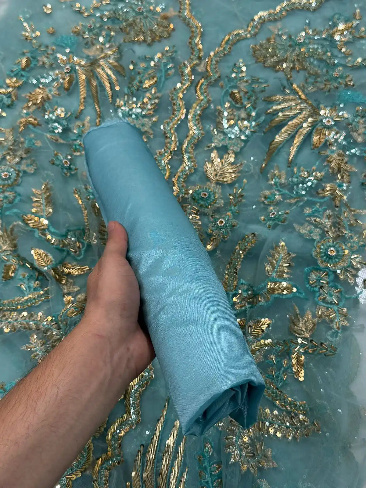 DUPATTA: Pure Net Dupatta Fully Embroidery Work Luxury Look Palu Style Ferozi & Gold Color Dupatta