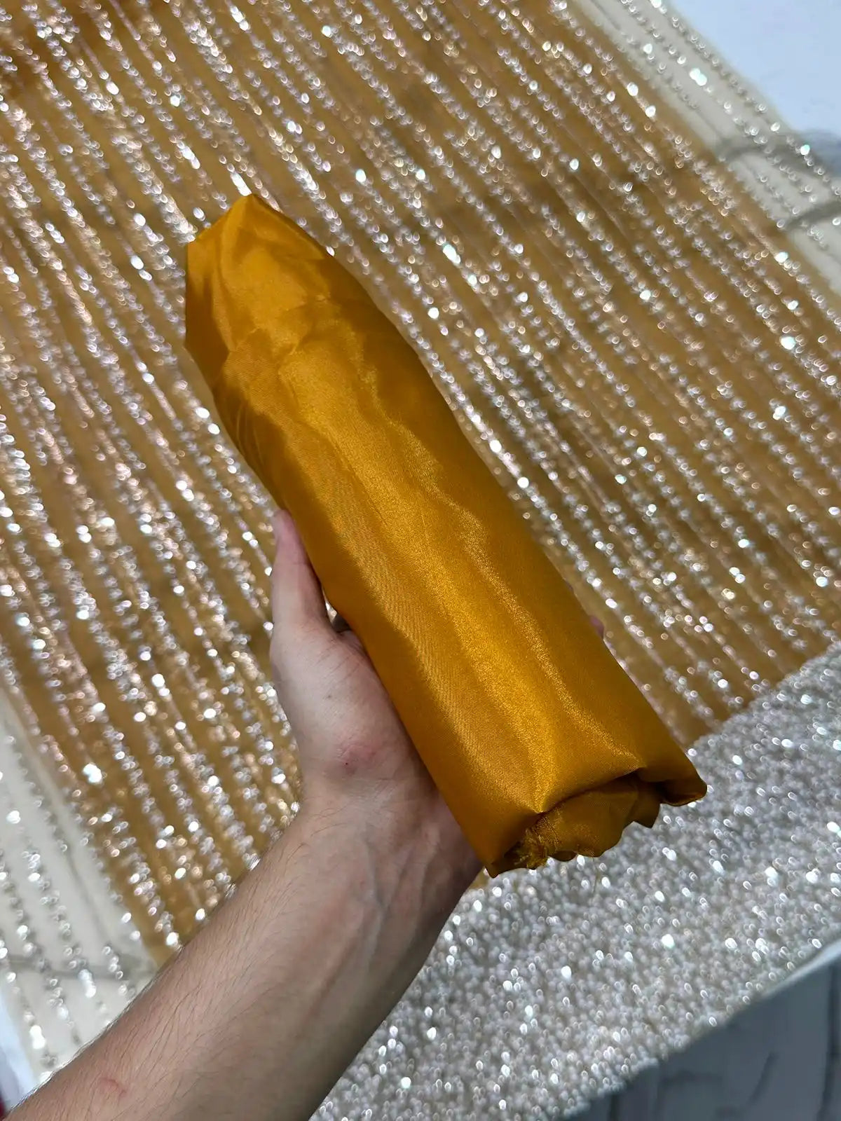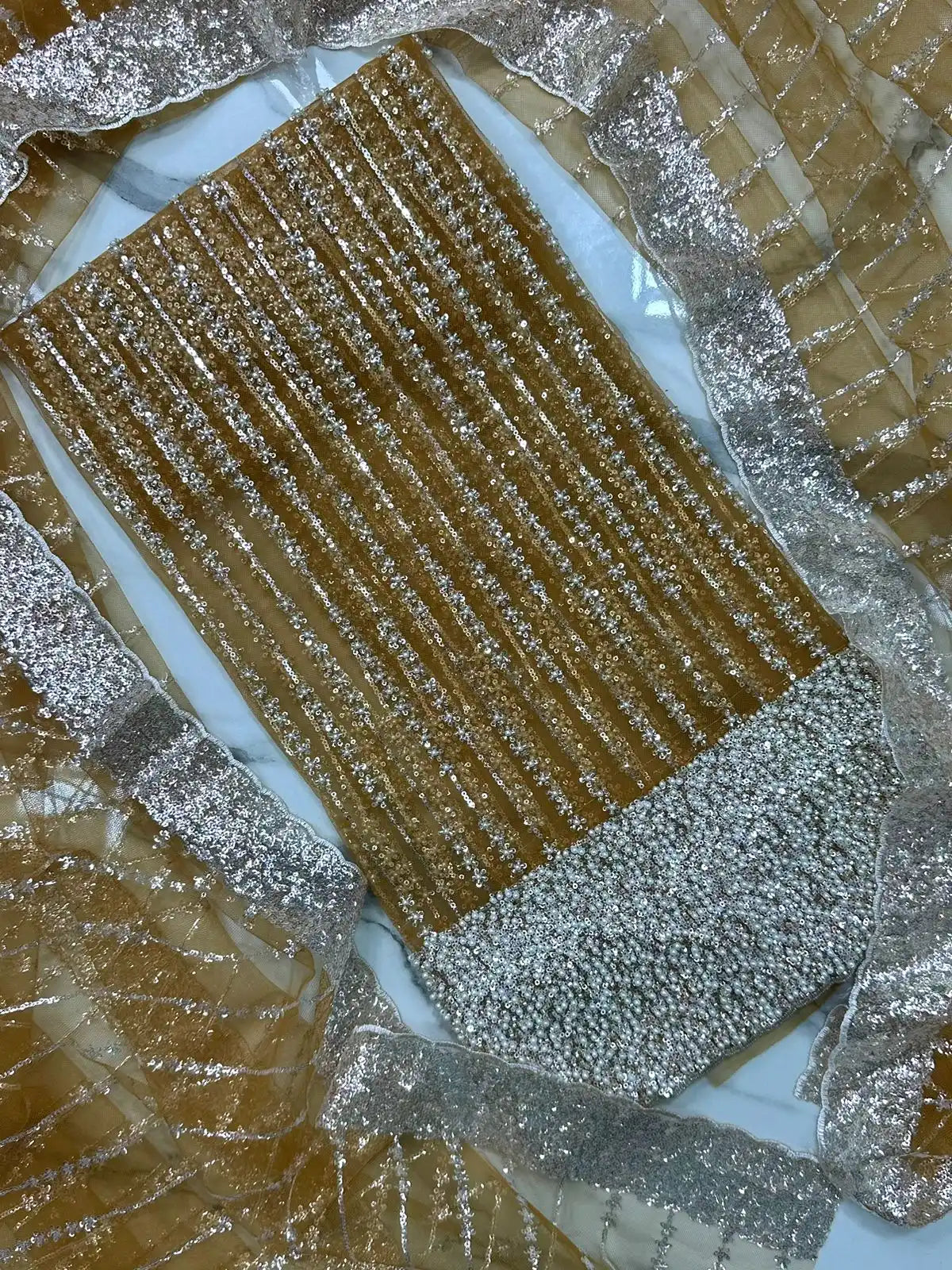 ✨ Sequins Work (silver shine) ✨ Bead Work / Pearl Work (white beads pearls) ✨ Line Pattern Hand Embroidery ✨ Heavy 3D Hand Embellishment (dense pearls + sequins cluster) ✨ Heavy Cut Dana Work