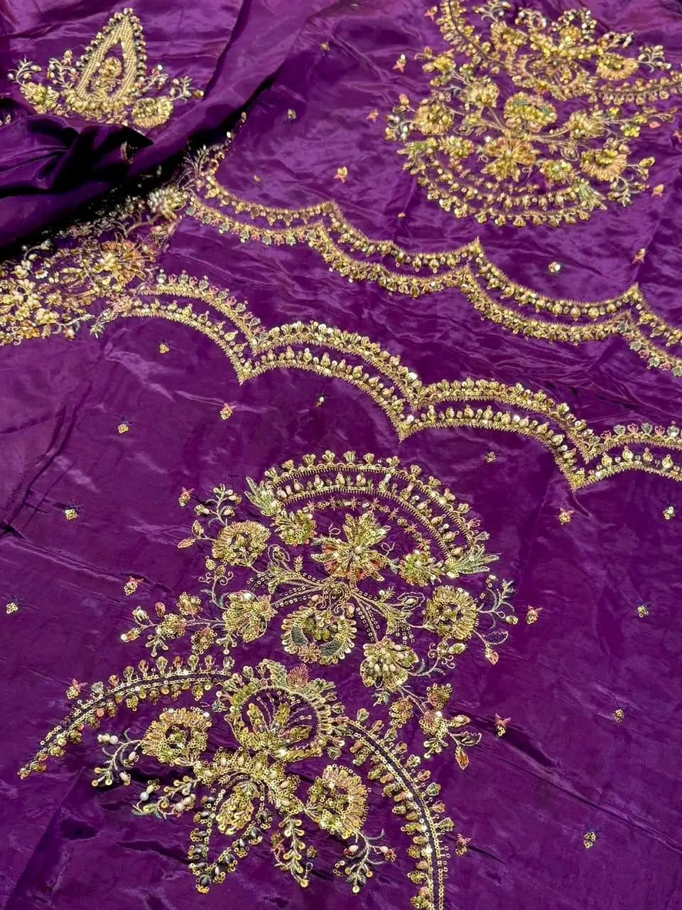DUPATTA: Pure Net Dupatta Fully Embroidery Work Luxury Look Palu Style Purple & Gold Color Dupatta